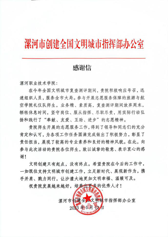 五、创文感谢信