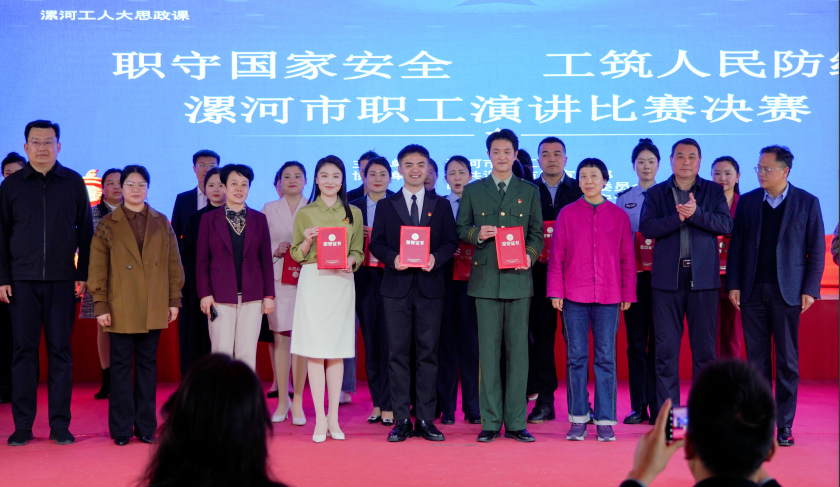 3月19日,由中共漯河市委宣传部、中共漯河市委政法委员会、市总工会、中共漯河市委国家安全委员会、漯河市公安局、漯河市司法局联合主办的2025全市职工国家安全教育宣讲比赛总决赛落下帷幕。在院工会的积极组织动员下,yl6809永利集团分工会积极响应,选派赵阳老师团队参加此次大赛,最终荣获一等奖,并入围全省现场决赛。市总工会党组书记、常务副主席、二级巡视员罗静、市委办公室副主任、市委国安办专职副书记代涛、市委政法委副书记、二级调研员郝清俊、市司法局党组成员、副局长李素玲、市公安局党委委员、政治主任杨锋、市委宣传部四级调研员黄颖等领导为获奖选手颁奖。
