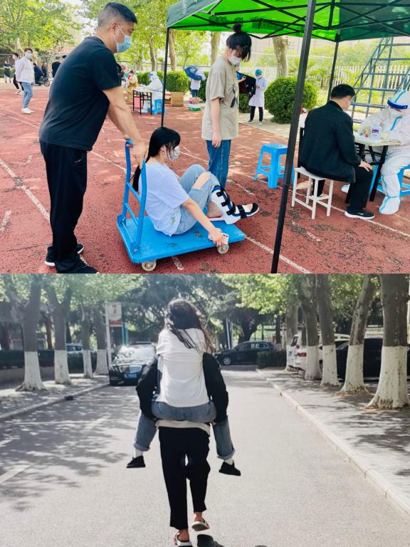 旅航院师生接力护送腿脚不便学生参加核酸检测