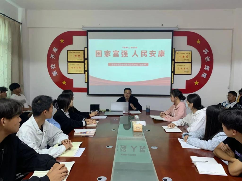为推进主题教育在新生群体走深走实,10月24日,旅游与酒店管理系党总支召开主题教育调研宣讲会,党总支书记耿鹏坤及24名新生代表参加会议。