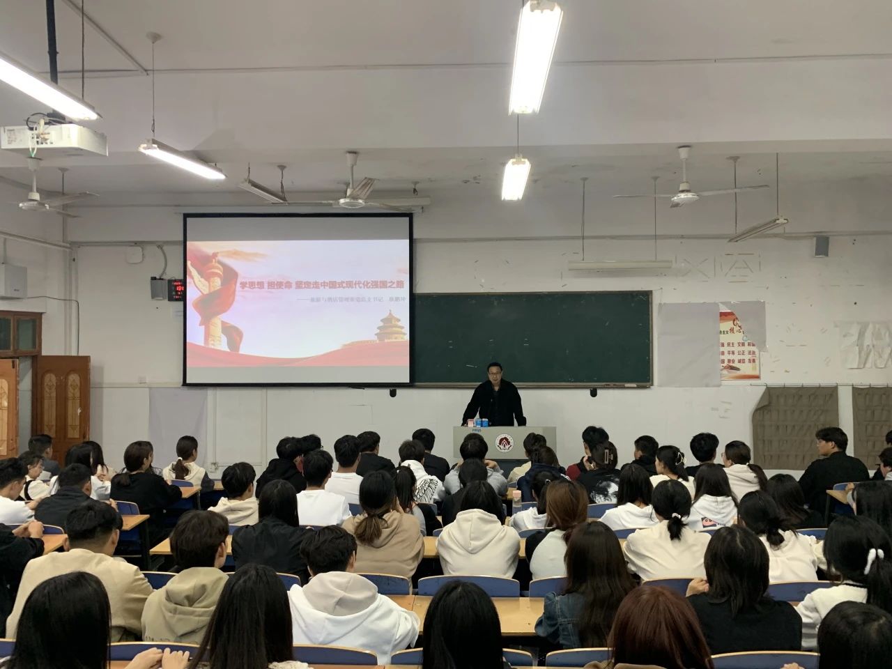 冯俊强以《深刻领悟“六个必须坚持”的核心要义》为题,带领学生逐一学习了“六个必须坚持”的科学内涵,教导学生要深刻认识和把握“六个必须坚持”的根本政治立场、鲜明价值取向和科学思想方法。