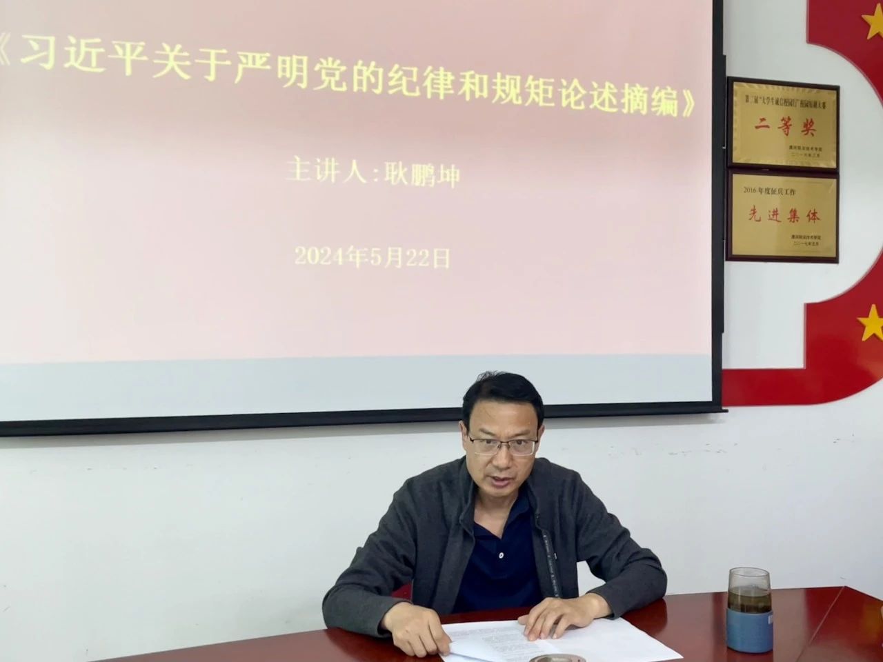 为进一步强化纪律意识,加强作风建设,5月22日下午,旅游与酒店管理党总支书记耿鹏坤同志为全体教师党员及学生发展对象讲授了一节别开生面的党纪教育专题党课。