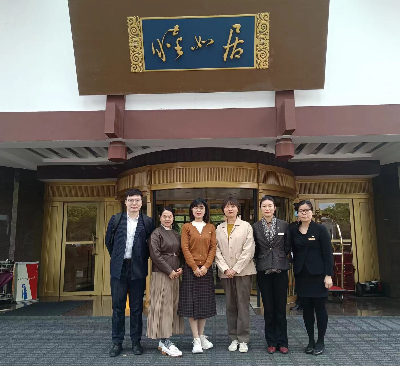(旅航院丁琳、谷胜男老师赴上海西郊宾馆考察,与人力资源部工作人员合影)