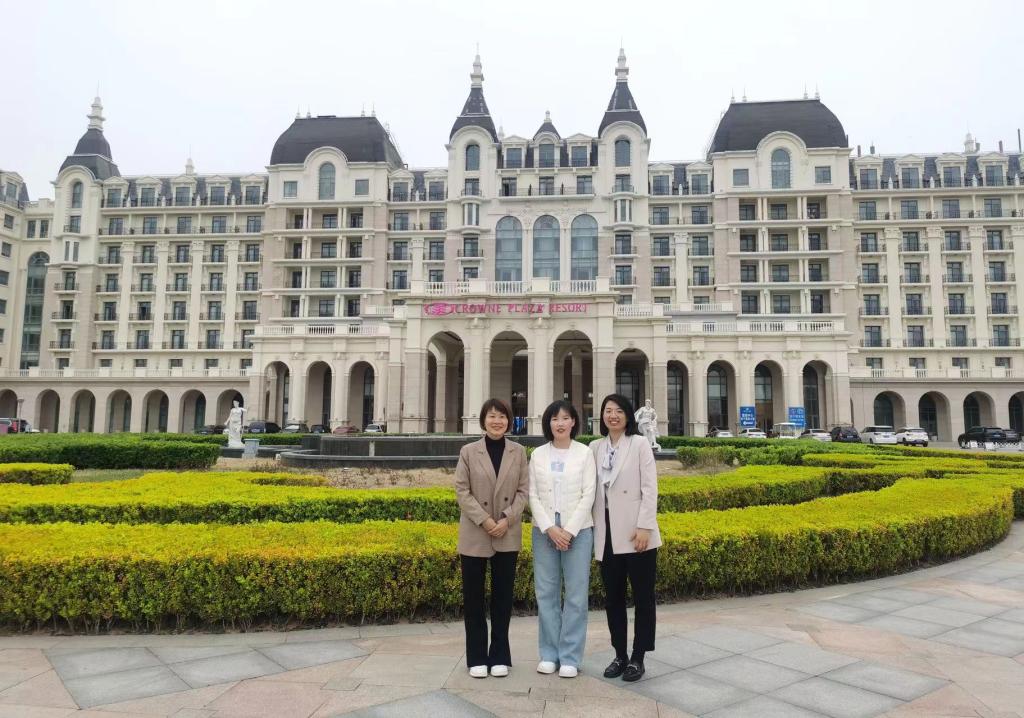(旅航院张彩红、陈微微老师赴洲际集团旗下皇冠假日酒店考察,与酒店人力资源经理徐爽女士合影)