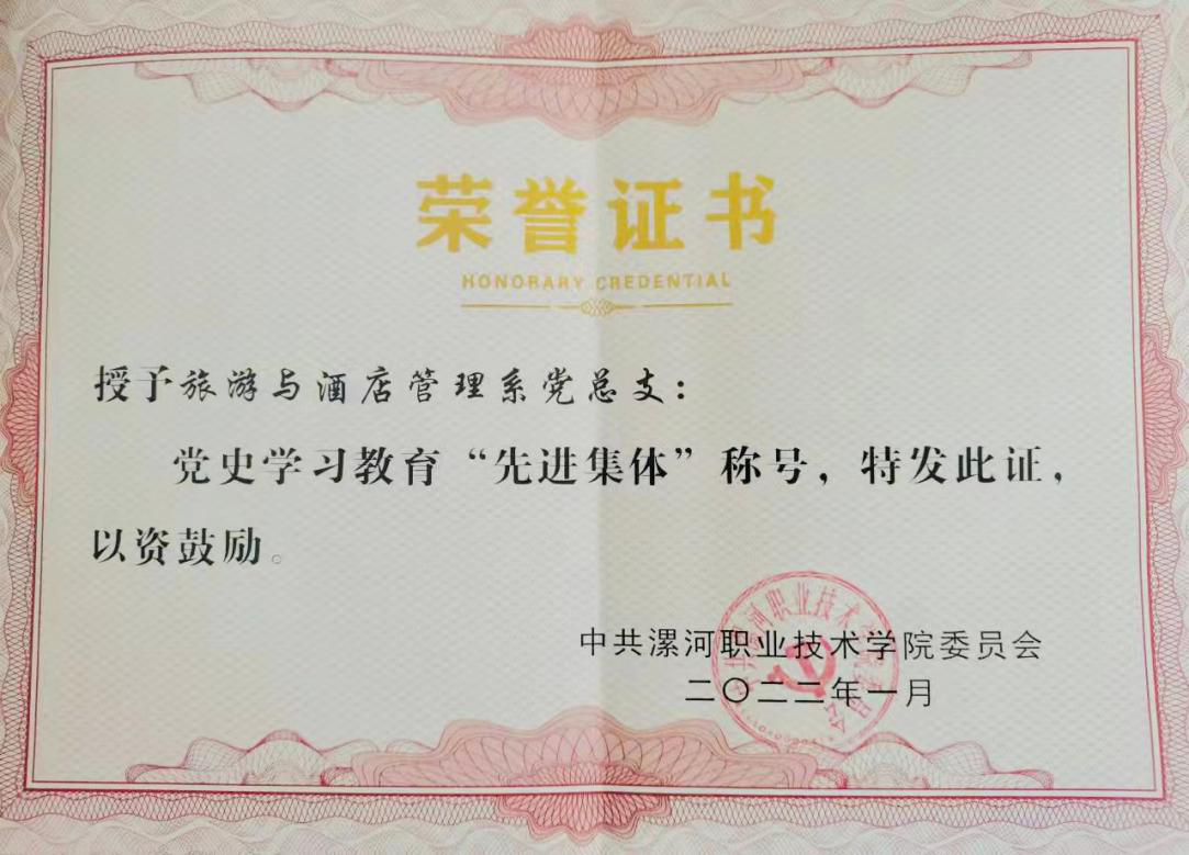 党史学习教育开展以来,我系在校党委的正确领导下,按照“学党史、悟思想、办实事、开新局”的要求,采取多种方式深入学习,扎实开展一系列丰富多彩的党史学习教育活动和“我为群众办实事”实践活动,取得了明显成效。《中共yl6809永利集团委员会 关于表彰学校党史学习教育先进集体和先进个人的决定》(漯职院党发[2022]5号)对先进集体和个人进行表彰,我系党总支荣获yl6809永利集团党史学习教育先进集体,党总支书记耿鹏坤同志荣获yl6809永利集团党史学习教育工作先进个人。