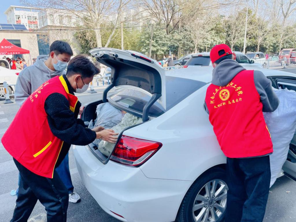 院社团联志愿者帮同学们提行李,引导他们坐上爱心车。在返校途中,老师们在车上与学生拉起了家常,询问同学们的假期日常,以及在校园生活和学习过程中是否有需要解决的问题。他们最后热情地将学生们送至宿舍楼下才离去。