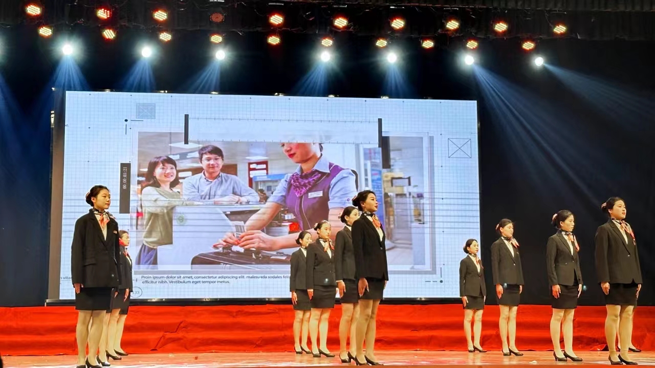 近年来,我系礼仪协会志愿者多次参加了我市重大活动服务接待工作,受到了各级领导的肯定,展示了我校学生的良好形象;2023年高铁民航空乘专业蓬勃发展,目前已经有2名同学分别入职东方航空和西部航空公司,有将近35名学生进入机场工作。