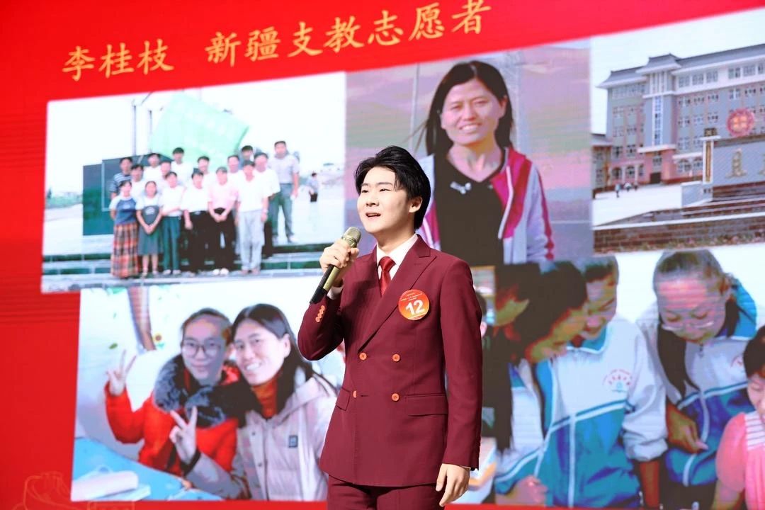 经过层层选拔,来自全省的38所高校的38名高素质选手参与决赛角逐。我系赵少林同学以《建设美丽边疆 助力中华复兴》为题,讲述了我系在“文化润疆”志愿服务活动中真实发生的故事,用生动的语言和饱满的感情展现新时代大学生对“铸牢中华民族共同体意识”的深刻认识。最终赢得评委和观众的一致好评,荣获二等奖。