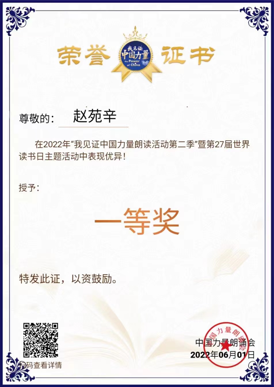 喜报|旅游与航空学院赵苑辛同学荣获第二季“我见证中国力量”朗读大赛全国一等奖