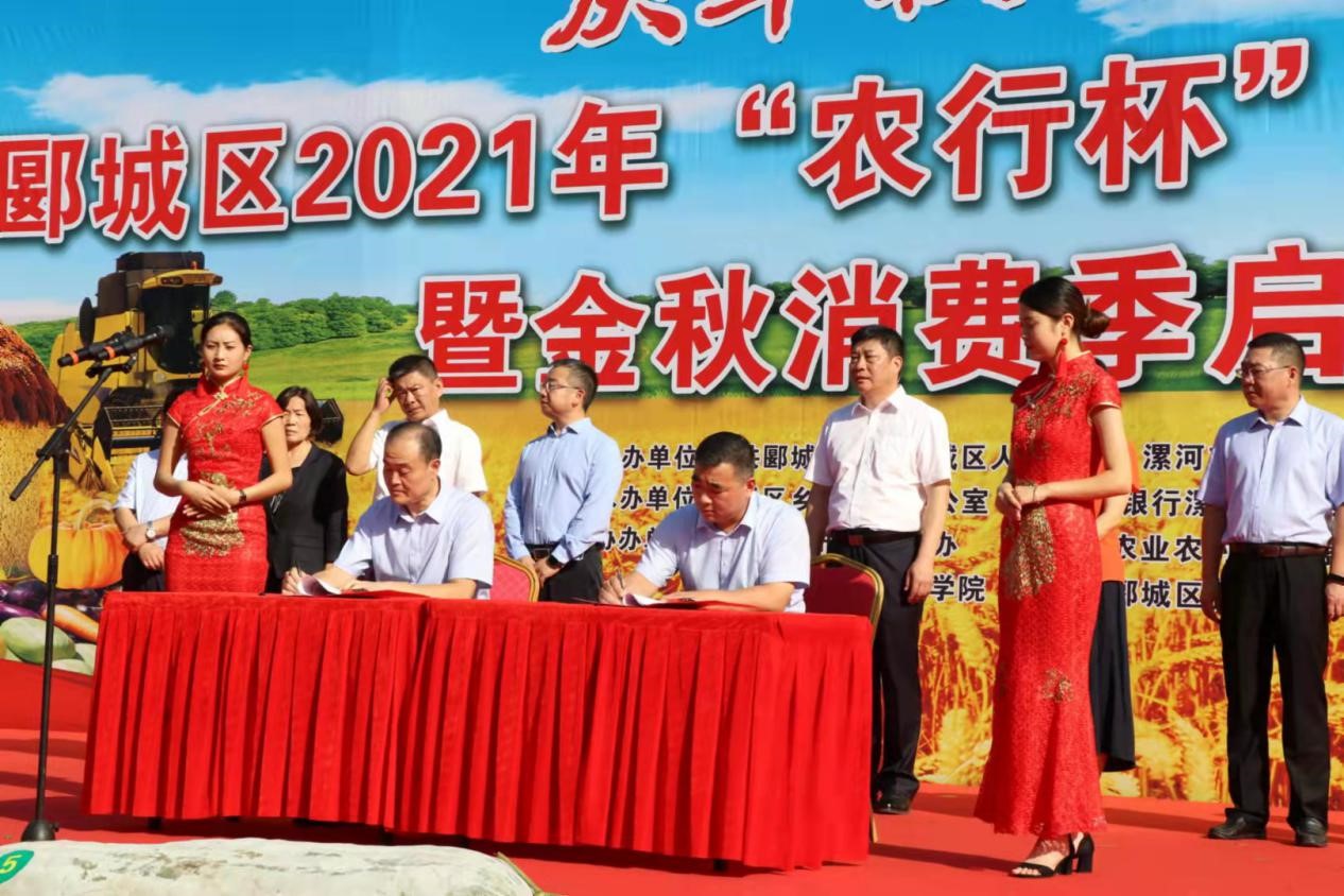 9月23日,郾城区第四届中国农民丰收节暨金秋消费季启动仪式在“国家森林乡村”冢马村的文化广场上举行。漯河市郾城区区委书记李新伟、市农业农村局局长罗静、漯河市职业技术学院党委副书记薛存心、市广播电视台台长魏丰强、农业银行漯河分行党委书记、行长韩俊岭、区领导朱俊峰、陈向凡、孟永生、闫慧英等出席了当天的启动仪式。会上,郾城区人民政府和yl6809永利集团签订了郾城区幸福乡村游一号线项目校地协议,倾力打造现代农业和幸福乡村游。