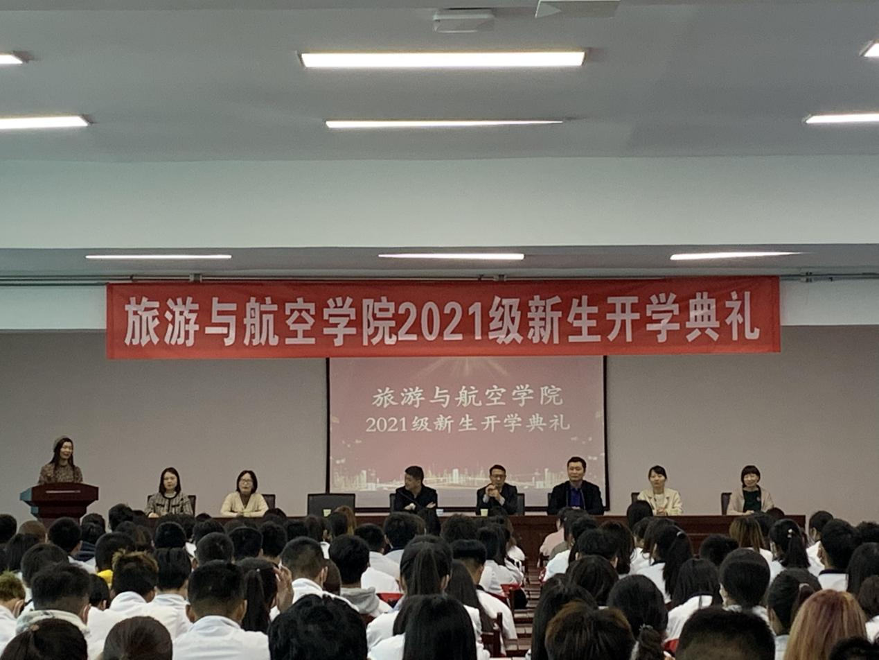 伴随着庄严的国歌,旅航院2021级新生开学典礼正式拉开序幕。