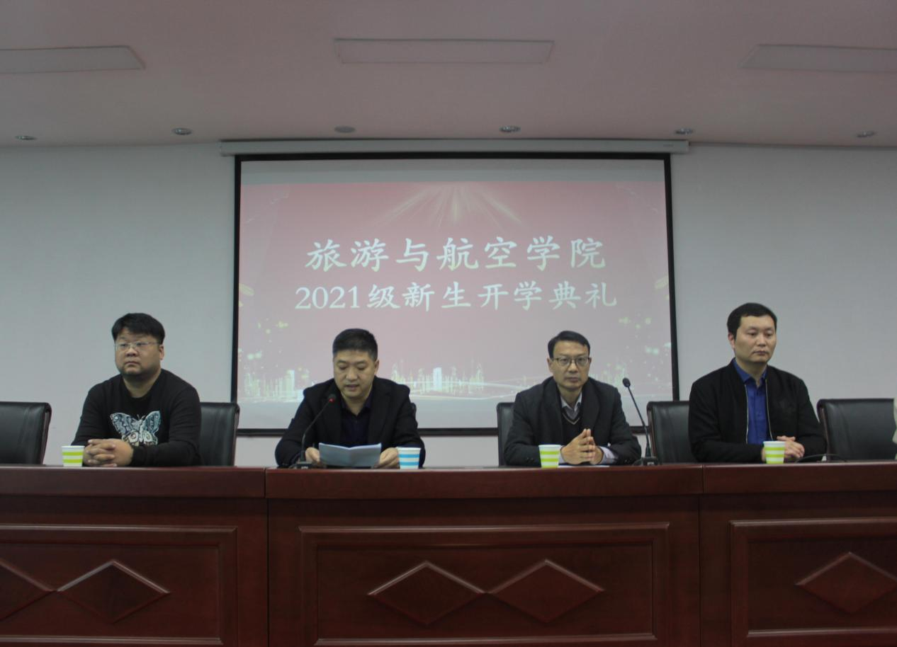 10月16日上午十点,旅游与航空学院2021级新生开学典礼在行政楼七楼会议室举行。旅游与航空学院党总支书记耿鹏坤、行政负责人冯俊强、教学负责人侯冰、学管负责人潘智睿、酒店管理教研室主任张彩红、旅游管理教研室主任丁琳、高铁航空教研室主任孙冬玲,任课教师代表及2021级新生辅导员共同参加了本次活动。典礼由吴筱艾老师主持。