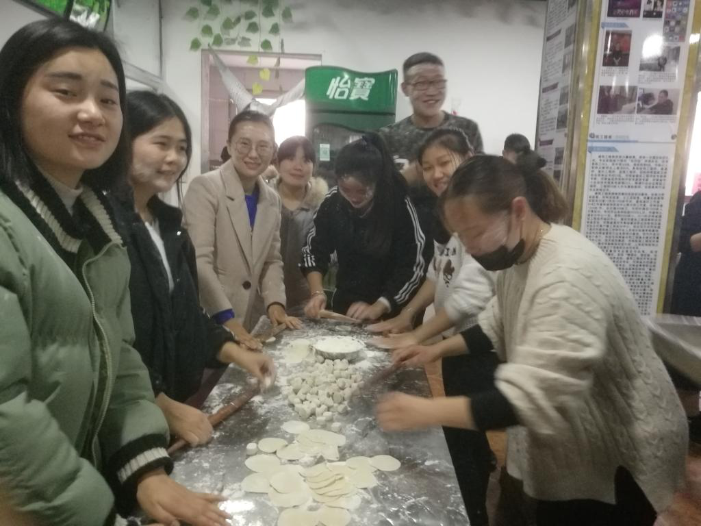旅游与酒店管理系系主任王世峰、学管主任张二霞、办公室主任候冰、辅导员老师和专业教师都来到了食遇餐厅,送上暖暖的祝福。活动现场,同学们围坐在一起,擀皮的擀皮,和面的和面,包饺子的包饺子,大家分工明确,场面其乐融融。此次活动充分发挥了同学们的协作能力,在包饺子的过程中,同学们更是发挥年轻人的想象力和创造力,包出了各种形态的饺子。老师们也参与到了包饺子的活动中来,增进了师生之间的交流,拉近了老师和同学们之间的距离,也让远离家乡的同学们感到了浓浓的暖意。人多力量大,不到半个小时,热腾腾的饺子就端上了餐桌,老师们吃着学生包的饺子感觉格外香,同学们吃着自己包的饺子感觉格外的美。大家都感受到了旅游与酒店管理系这个大家庭的温暖。