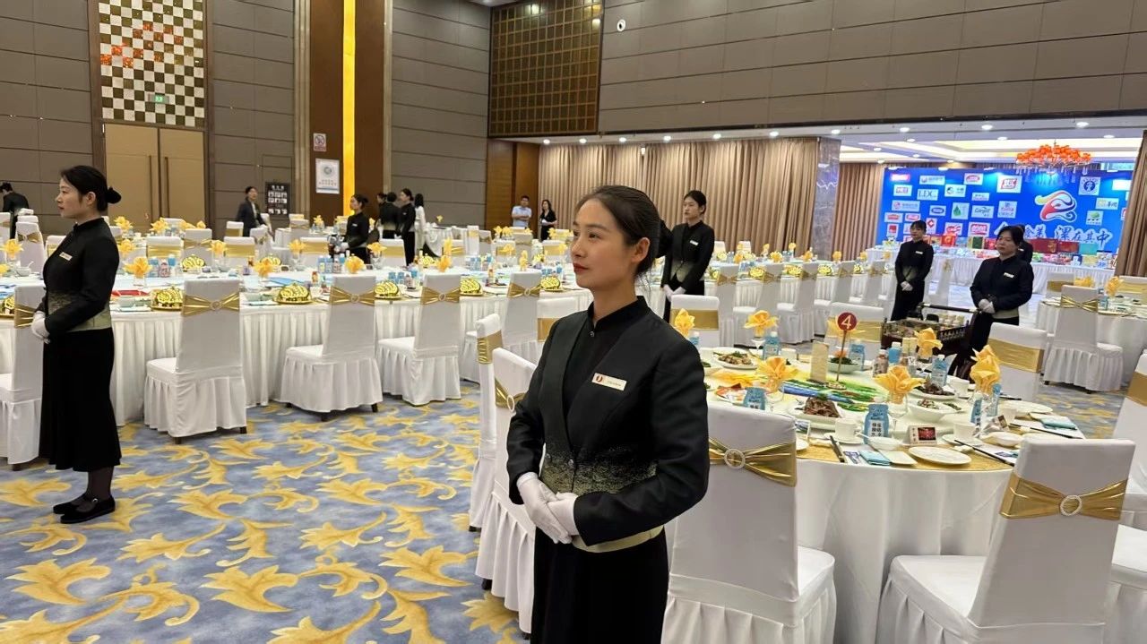 本次食博会中,我院学生被分赴不同岗位,充分发挥了专业优势。15名女生担任礼仪服务,以优雅得体的仪态和细致周到的服务,为开幕式、嘉宾接待等重要活动增添了一抹亮色;12名男生在主会场承担后勤保障工作,高效完成了物资调配、现场协调等任务;另有15名学生进驻漯河迎宾馆,为参会嘉宾提供高标准的会场服务与餐饮服务,展现了扎实的职业技能。