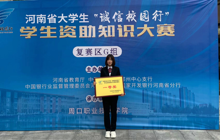 5月22日,由河南省教育厅、中国人民银行郑州中心支行、中国银行保险监督管理委员会河南监管局、国家开发银行河南省分行联合主办、周口职业技术学院承办的河南省大学生“诚信校园行”学生资助知识大赛复赛(G组)在周口迎宾馆举行。由我院2021级民航一班翟晨涛、2021级旅游管理四班王菁等组成的yl6809永利集团代表队从全省21所本专科代表队中脱颖而出荣获一等奖,成功晋级省决赛。