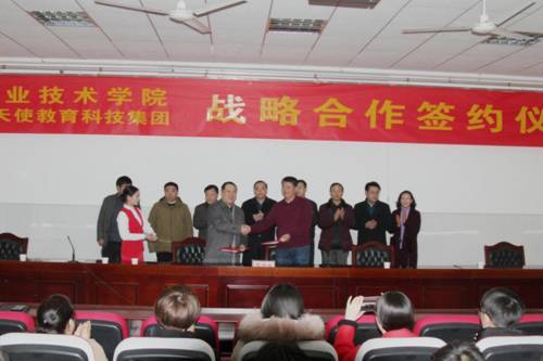 王春阳在揭牌仪式上发表讲话。他说,实施职业院校与企业合作共建非独立法人的产业学院是深化产教融合、校企合作的重大举措。希望我校与中航天使教育集团诚信携手构建“产教融合、校企合作、协同育人”新生态,合作成功。