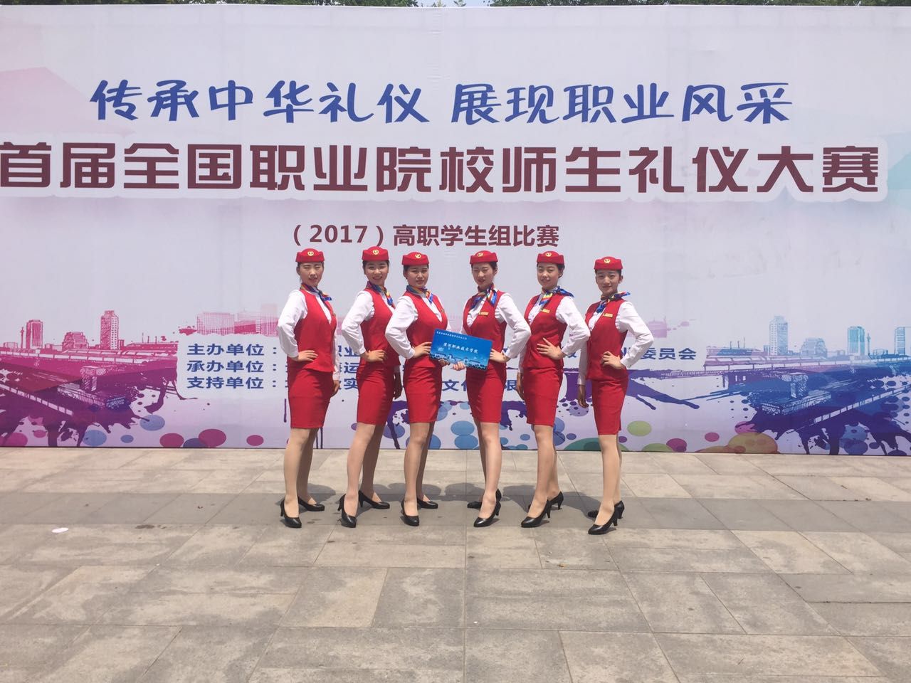 ---2017年6月17日—18日,由中国职业技术教育学会人文素质教育专业委员会举办的以“传承中华礼仪 展现职业风采”为主题的“首届全国职业院校师生礼仪大赛”在天津海运职业学院成功举办。我院旅游与酒店管理系选派礼仪队成员李晓莉、赵艳艳、王炎钶、李歌、王笑、郑延敏、孙潇潇7名同学参赛。本次比赛由旅游与酒店管理系主任王世锋亲自带队,指导老师孙冬玲随行。经过激烈角逐,分别获得了个人礼仪风采二等奖、团体礼仪展示三等奖、礼仪情景剧三等奖,高职组礼仪知识竞赛小能手等9项佳绩。