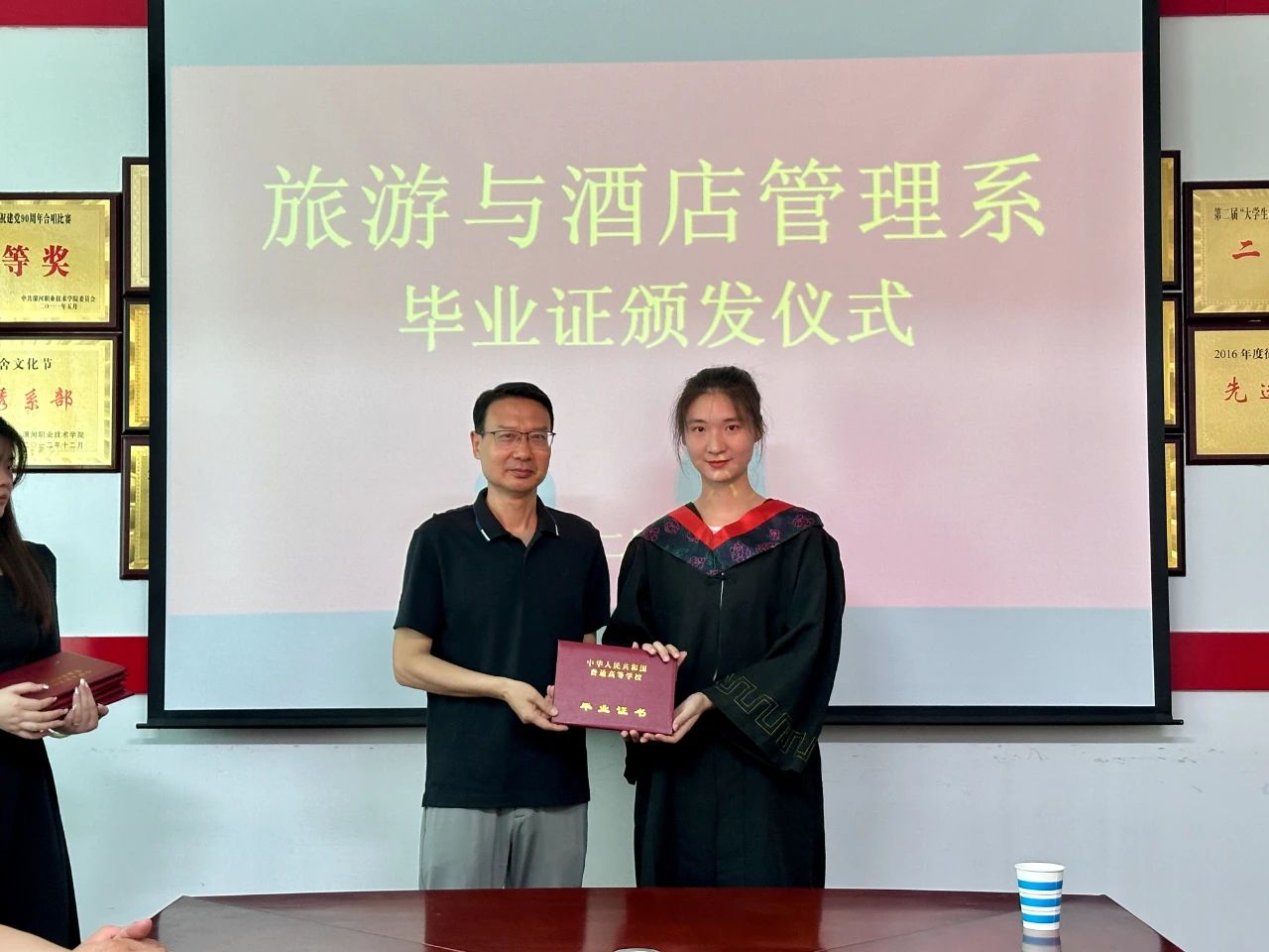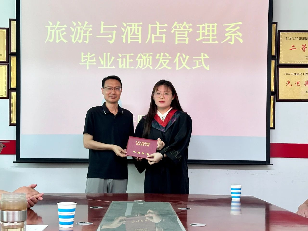 旅游与酒店管理系党总支书记耿鹏坤老师寄语毕业生:三年来,你们匆忙走过,却充实而美丽;你们流过汗水,却伴着欢声笑语;你们踏着荆棘,却嗅得扑面花香。你们和漯职一起成长,一起努力奋斗,创造一次次的辉煌,用梦想和青春编织了这绚丽多彩的大学生活。