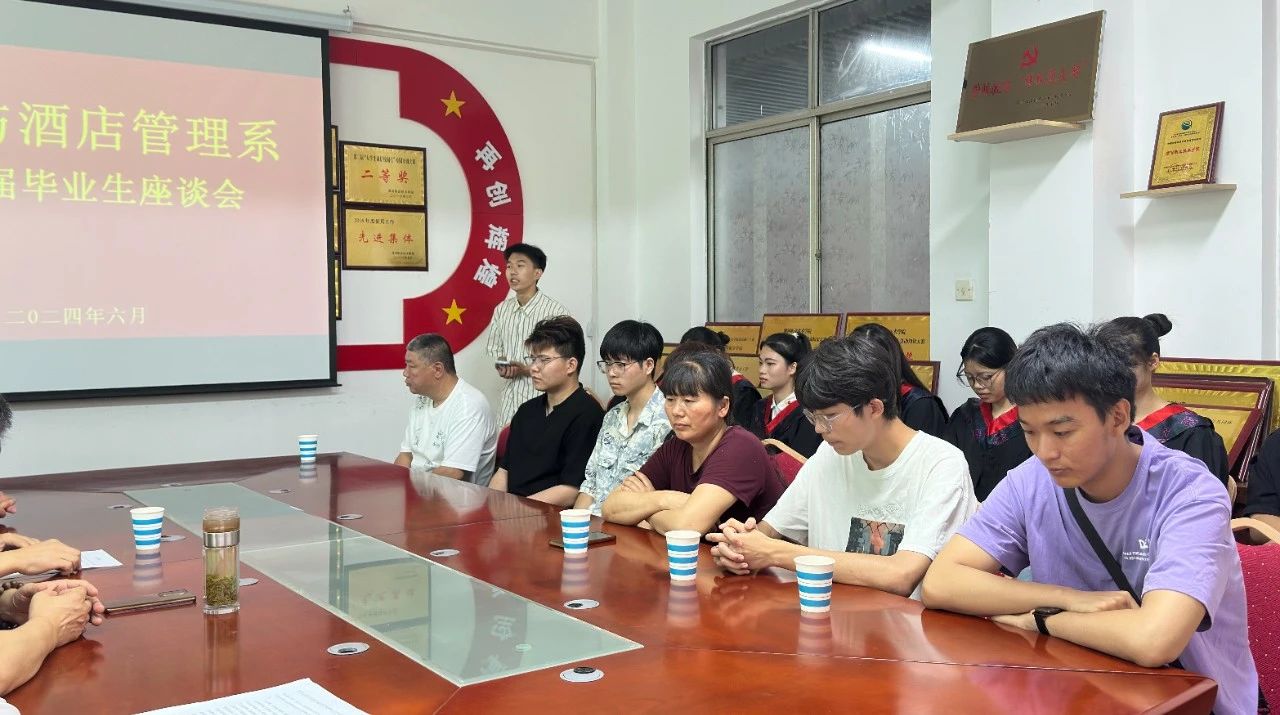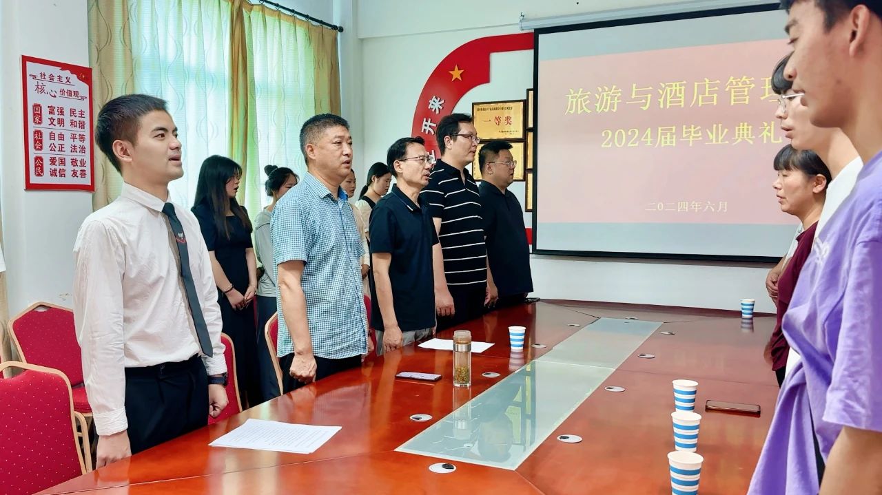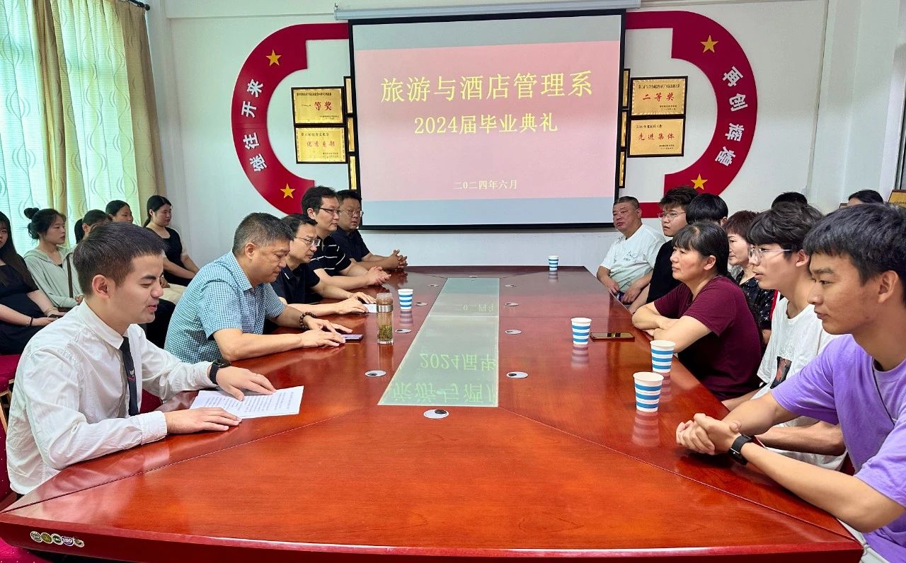 6月28日上午9时,yl6809永利集团旅游与酒店管理系2024届毕业典礼在系会议室举行。系领导耿鹏坤、冯俊强、侯冰、潘智睿等老师出席典礼。赵阳主持典礼。