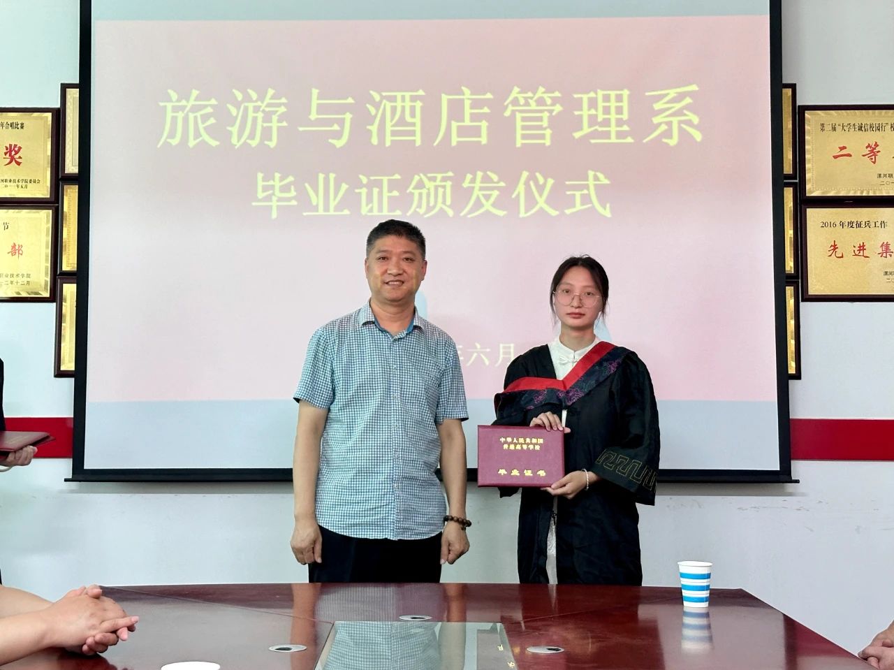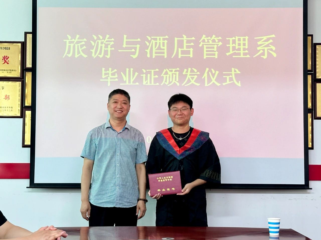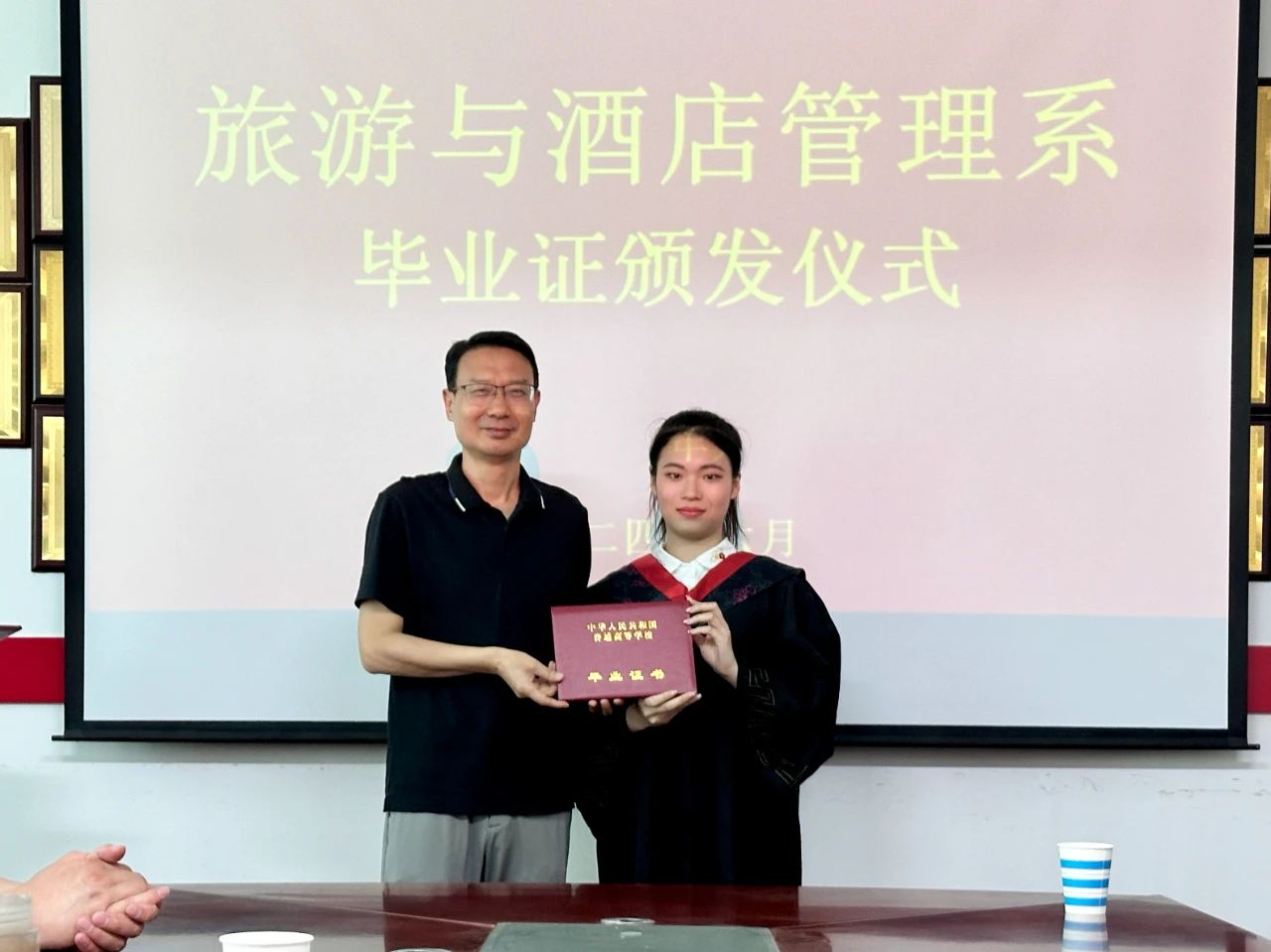 6月28日上午9时,yl6809永利集团旅游与酒店管理系2024届毕业典礼在系会议室举行。系领导耿鹏坤、冯俊强、侯冰、潘智睿等老师出席典礼。赵阳主持典礼。