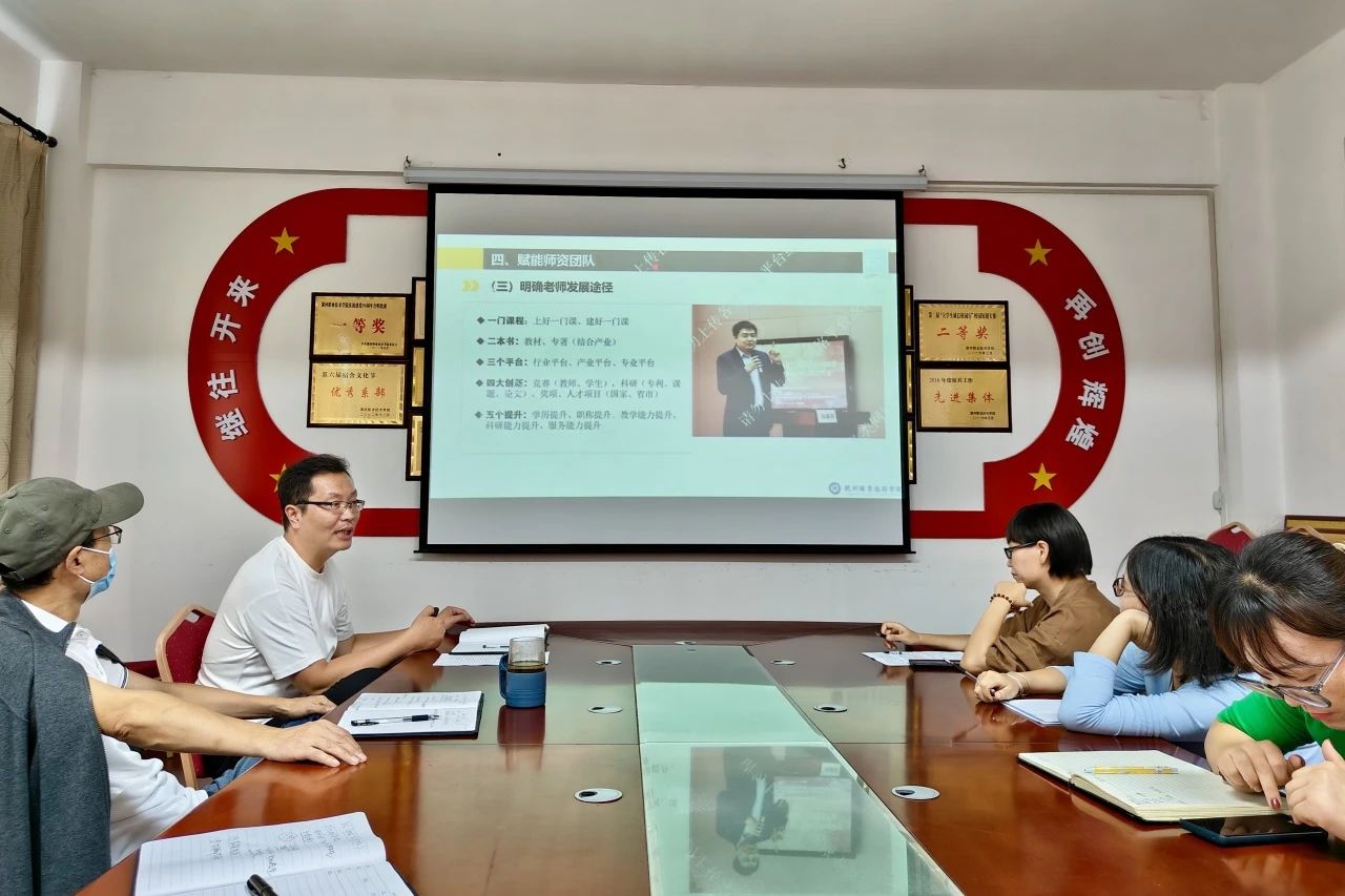 首先,系教学负责人侯冰分享了参加杭州职业技术学院 “课程建设能力提升骨干教师培训”的收获和心得。作为校企共同体办学模式的首创者,杭州职业技术学院在产教融合方面经验丰富,成功打造出拥有国家高水平专业群的达利女装学院典范模式,值得全系的学习和借鉴。