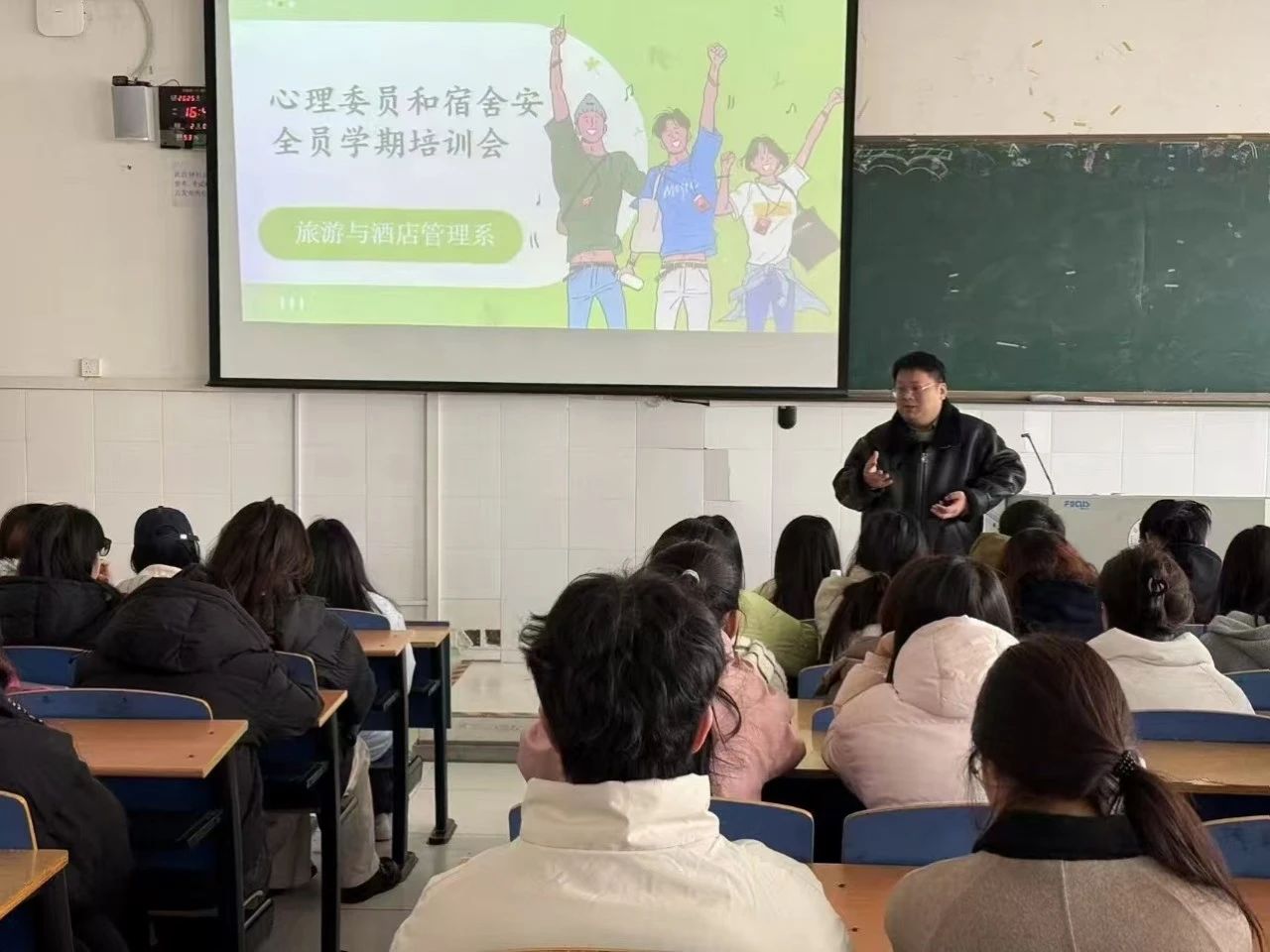 培训现场,潘主任以真实案例引入,列举大学生在日常生活中可能遇到的安全问题,并邀请各班宿舍安全员分享日常工作,了解各班宿舍安全员在工作中遇到的问题。随后,潘主任就各宿舍安全员的工作问题,给出了具体指导建议,进一步明确了宿舍安全员的工作职责。张丽老师与参会同学交流互动,鼓励他们积极开展班级心理健康教育工作,倾听班级同学心声。同学们一致表示:此次培训会意义深刻,收获颇丰,为自身未来工作提供了切实帮助,以后会创新工作方式,为同学们的心理健康建设贡献力量。