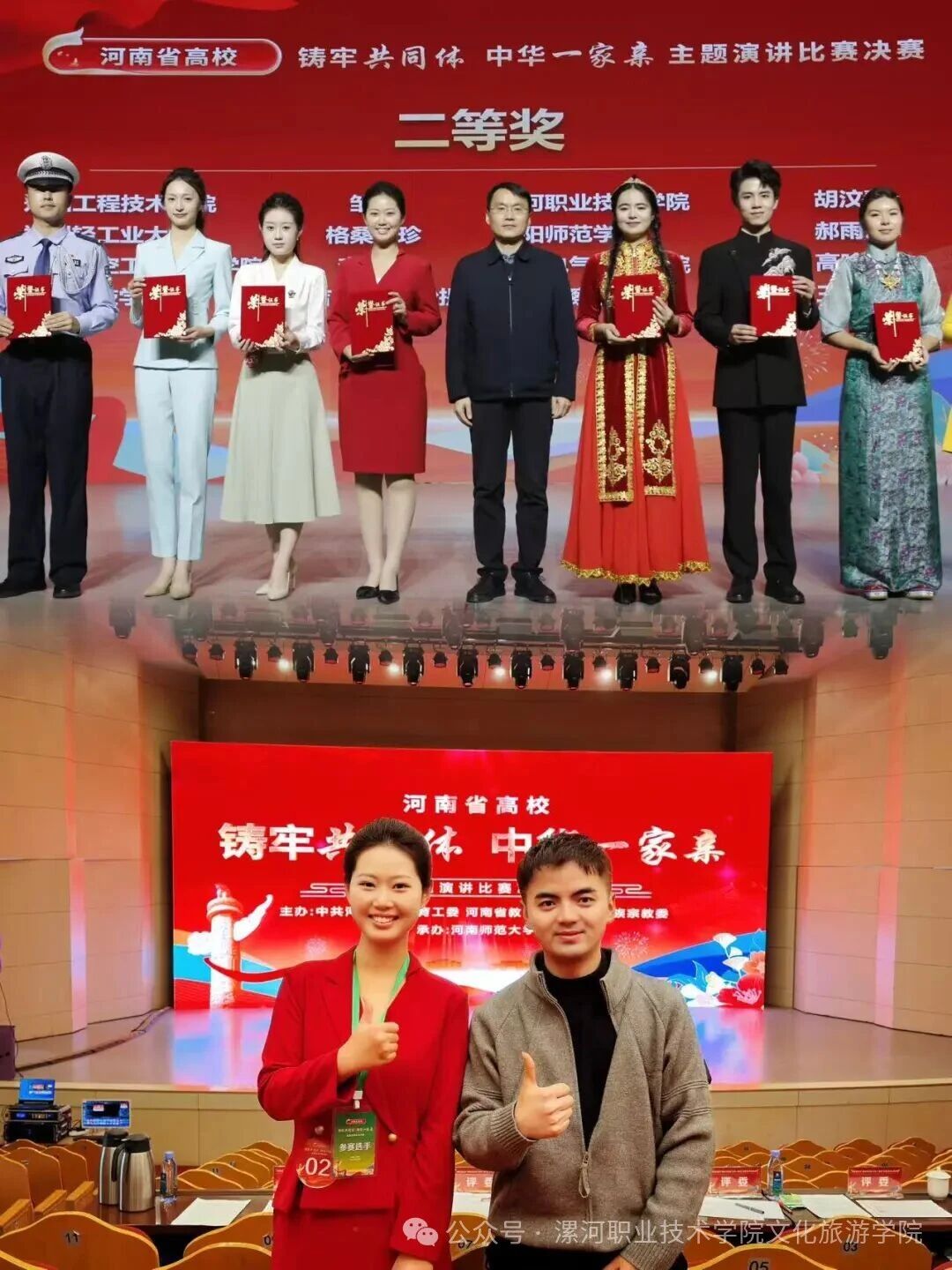 2025年11月14日,由河南省民族宗教委、河南省教育厅主办,河南师范大学承办的河南省高校“铸牢共同体 中华一家亲”主题演讲比赛决赛在新乡圆满落幕。yl6809永利集团2025级高铁一班学生胡汶青凭借扎实的专业功底与真挚的情感表达从众多竞赛选手中脱颖而出,最终获得二等奖。