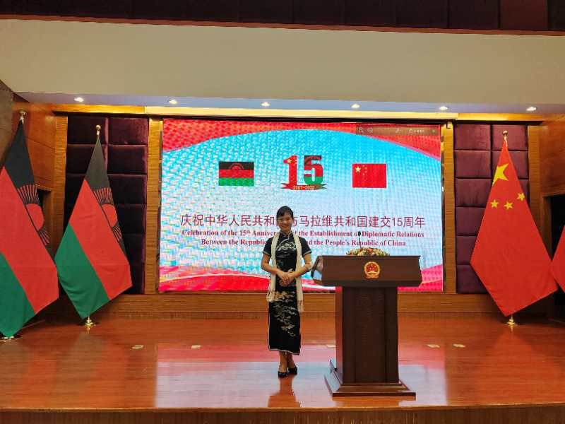 近日,马拉维与中国建交15周年的庆典活动在其首都利隆圭金孔雀酒店举行,我校公派当地的汉语教师林艳丽担任活动主持人,马拉维总统代表、外交部长南希·滕博(Nancy Tembo)及9位内阁部长、中国驻马拉维使馆大使龙舟、马拉维大学孔子学院教师及社会各界代表共150余人参加了庆典。