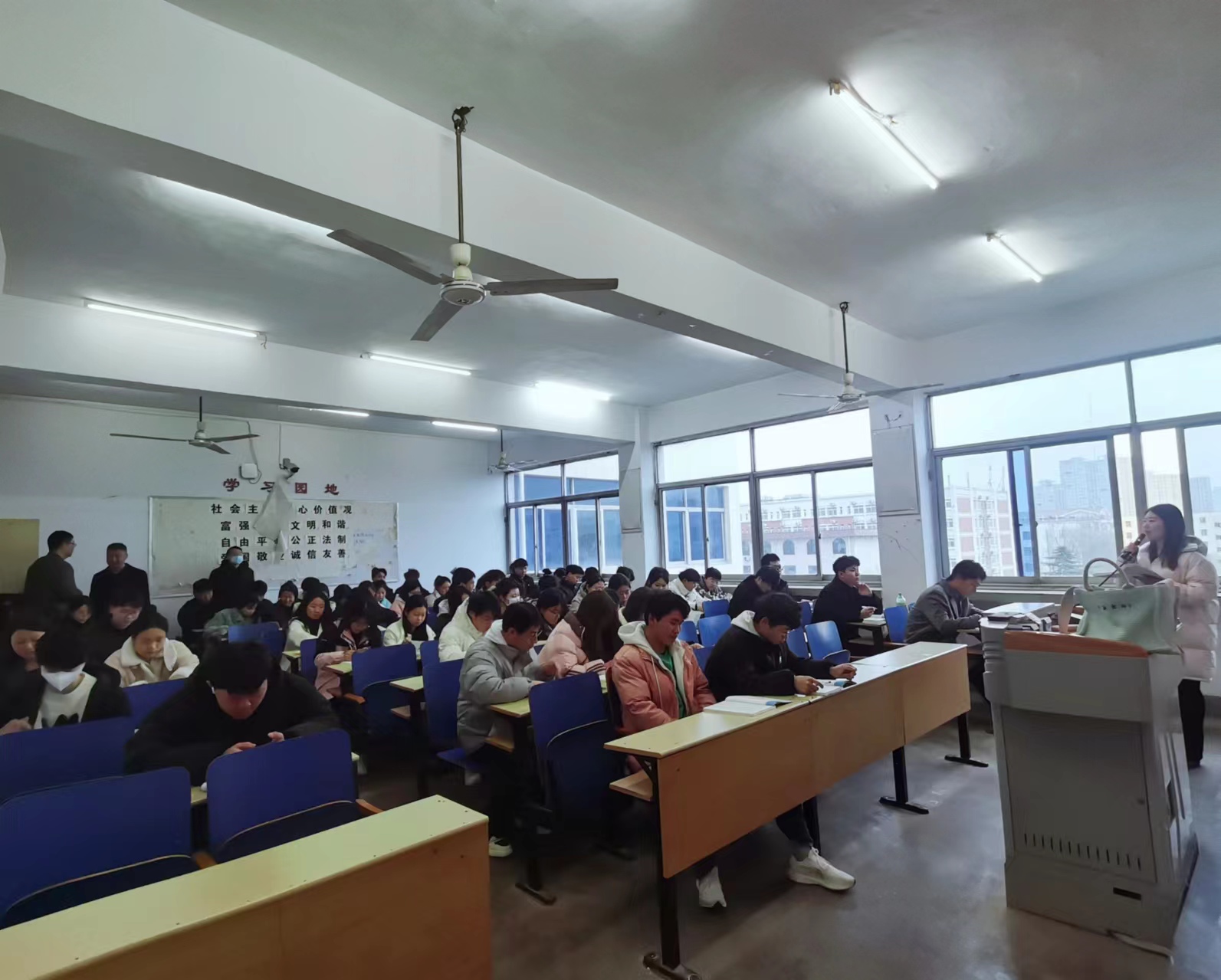 本次查课活动中,针对课堂教学秩序、教师教学准备工作、师生出勤情况、教学氛围以及各教室教学设备运行情况等方面进行全面巡视检查。查课中发现教师备课充分、教学教案丰富生动,精神面貌良好,学生认真听课、主动反馈,课堂整体教学氛围浓厚,展现了我系学生积极的学习态度,生动诠释了“新学期,新气象”。