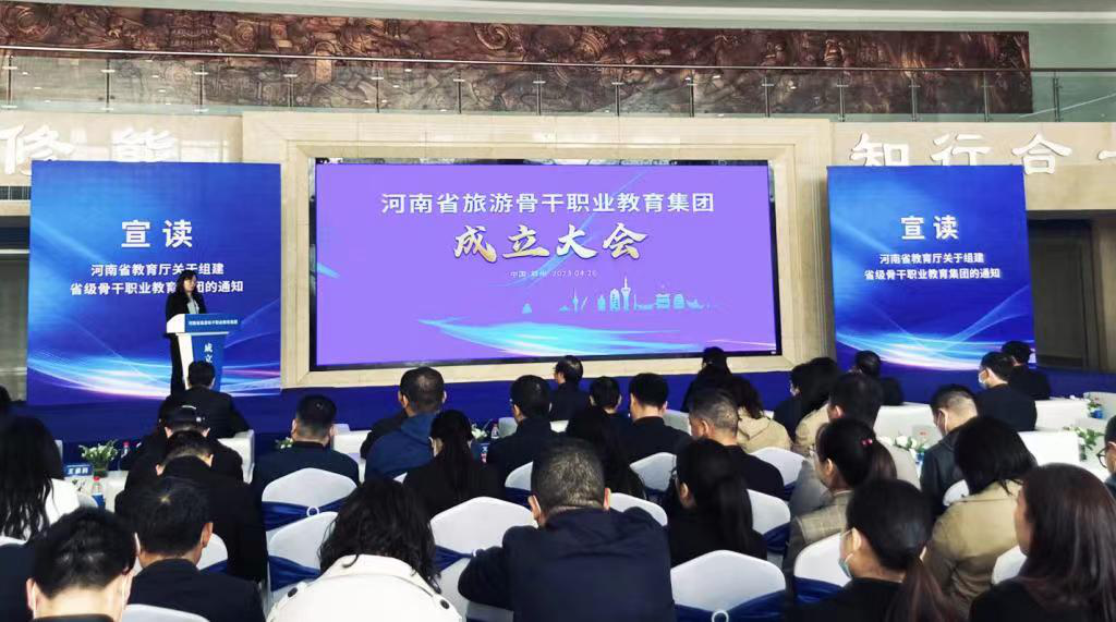 省教育厅党组成员、副厅长陈垠亭出席会议并为职教集团授牌,省文化和旅游厅二级巡视员刘春晓出席会议并作了重要发言,省教育厅职成教处副处长任远宣读组建通知。会上,我校被推选为河南省旅游骨干职业教育集团理事单位。