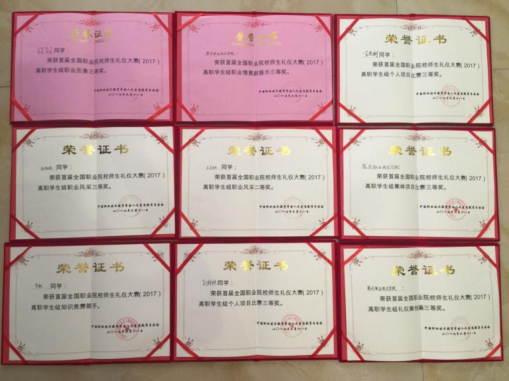 为了彰显中华传统礼仪文化的时代价值,展现职业院校师生的良好形象,引领职业院校在人才培养目标、课程建设、礼仪教育教学、实习实训创新等方面的改革,为全国职业院校搭建一个全国礼仪教育教学交流展示的平台, 6月17日—18日,由中国职业技术教育学会人文素质教育专业委员会举办的以“传承中华礼仪 展现职业风采”为主题的“首届全国职业院校师生礼仪大赛”在天津海运职业学院举办。来自全国18个省市的38个代表队,249名学生通过个人形象展示、团体礼仪操、情景剧、传统礼仪展示及礼仪知识竞赛等不同的形式,展示了职业院校学生对礼仪文化的理解、传承与践行。我院旅游与酒店管理系选派礼仪队成员李晓莉、赵艳艳、王炎钶、李歌、王笑、郑延敏、孙潇潇同学参赛,经过激烈角逐,分别获得了个人礼仪风采二等奖、团体礼仪展示三等奖、礼仪情景剧三等奖,高职组礼仪知识竞赛小能手等9项佳绩。