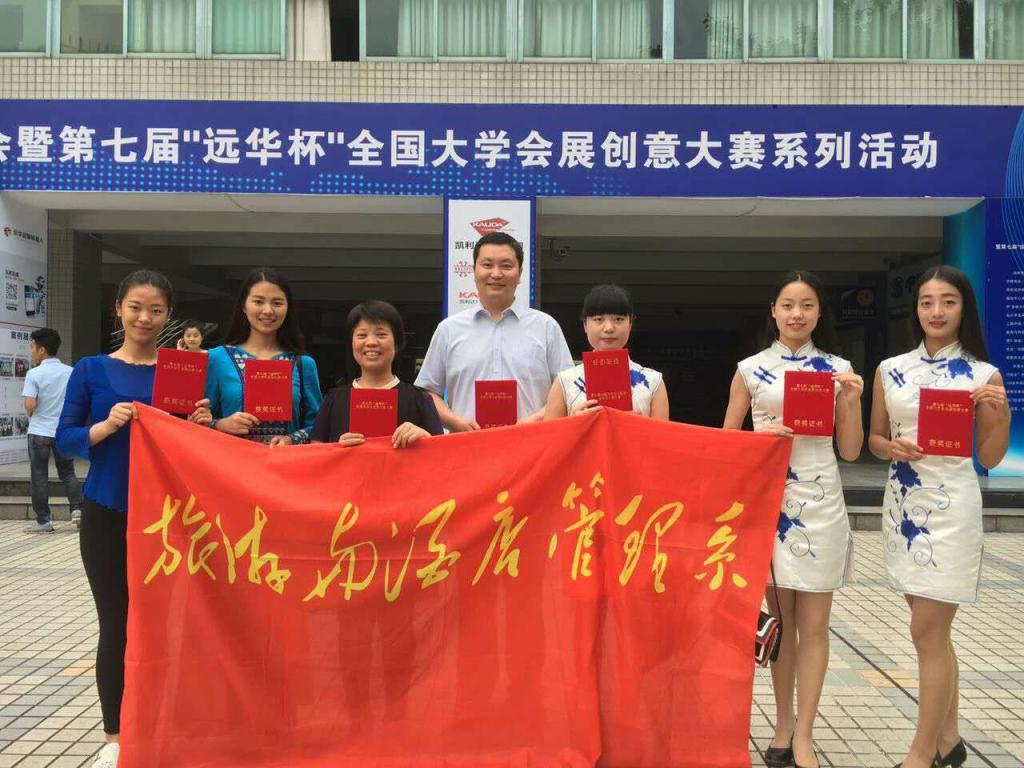 5月24日至26日,第八届中国会展教育与科技发展论坛暨国家会议中心第七届“远华杯”全国大学生会展创意大赛在广州举行。作为目前全国最高级别的教育部主办的大学生会展赛事,远华杯用严格的筛选标准、科学的主题定位、公平的竞争平台检验学生的实践水平,培养学生的思辨能力,激发学生的创新意识,开拓学生的创造思维。我系经过严格选拔,分别有两组学生代表我系参加比赛,经过三天紧张、激烈的角逐,侯冰老师指导的袁阳、郭宁茹、魏芳琳和吴佳雨小组作品《漯河市校园文化艺术节暨漯河市首届文化艺术团春节海外行》在成果赛策划组比赛中荣获二等奖;王世锋老师指导的靳毅博、朱萌、李菲菲和李晓莉小组作品《2017年漯河市第二届职业教育活动周成果展览会》在成果赛策划组比赛中斩获三等奖。本次会展创意大赛中,我系参赛学生表现出色,参赛作品丝毫不输于本科院校,充分展示了我系的教学水平和学生的策划能力和创新能力。